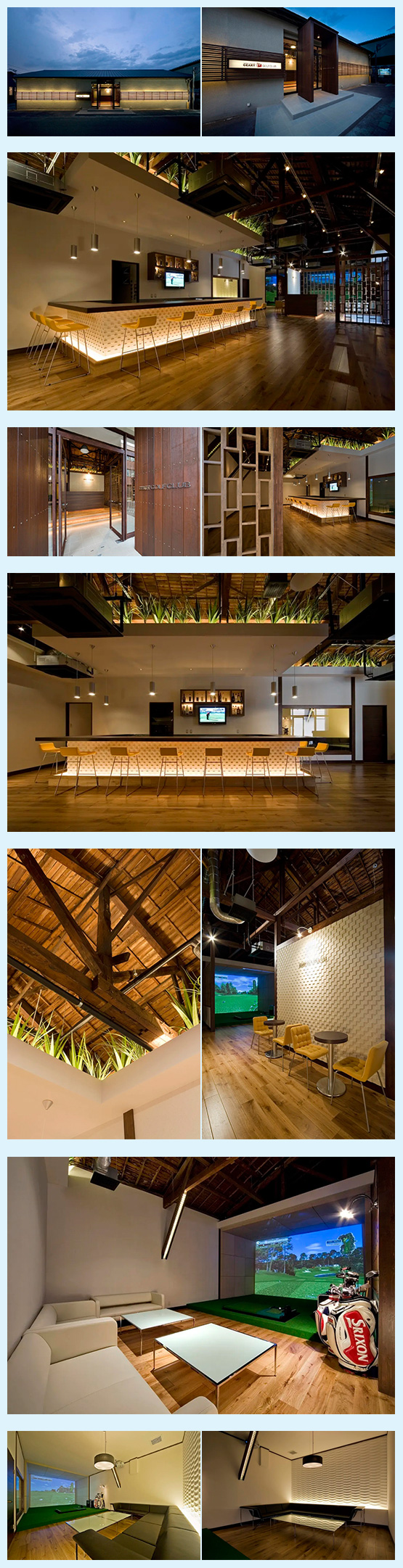 ・都会と自然の融合をテーマとした、ゴルフシミュレーター併設の店舗空間。